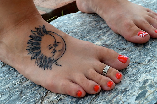 Dos astros que rigen nuestra existencia, a los que esta mujer ha elegido representarse en la parte superior de uno de sus pies.